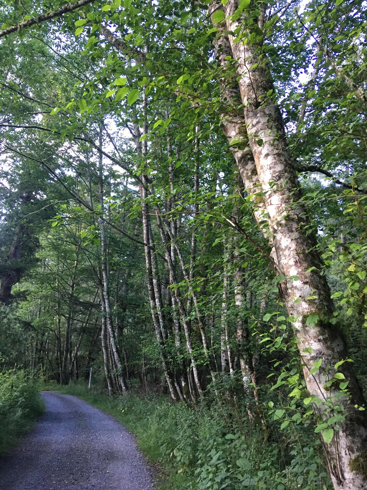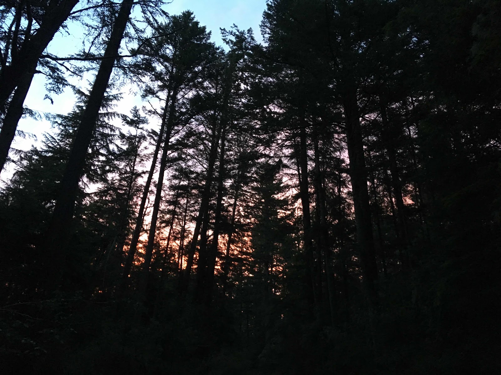 I like noticing relationships between trees. They seem to compete with one another for light but also to support one another. The same challenge we humans face. I contemplated the embrace of two trees during my first rest stop and inverted pose this morning (photo 9)