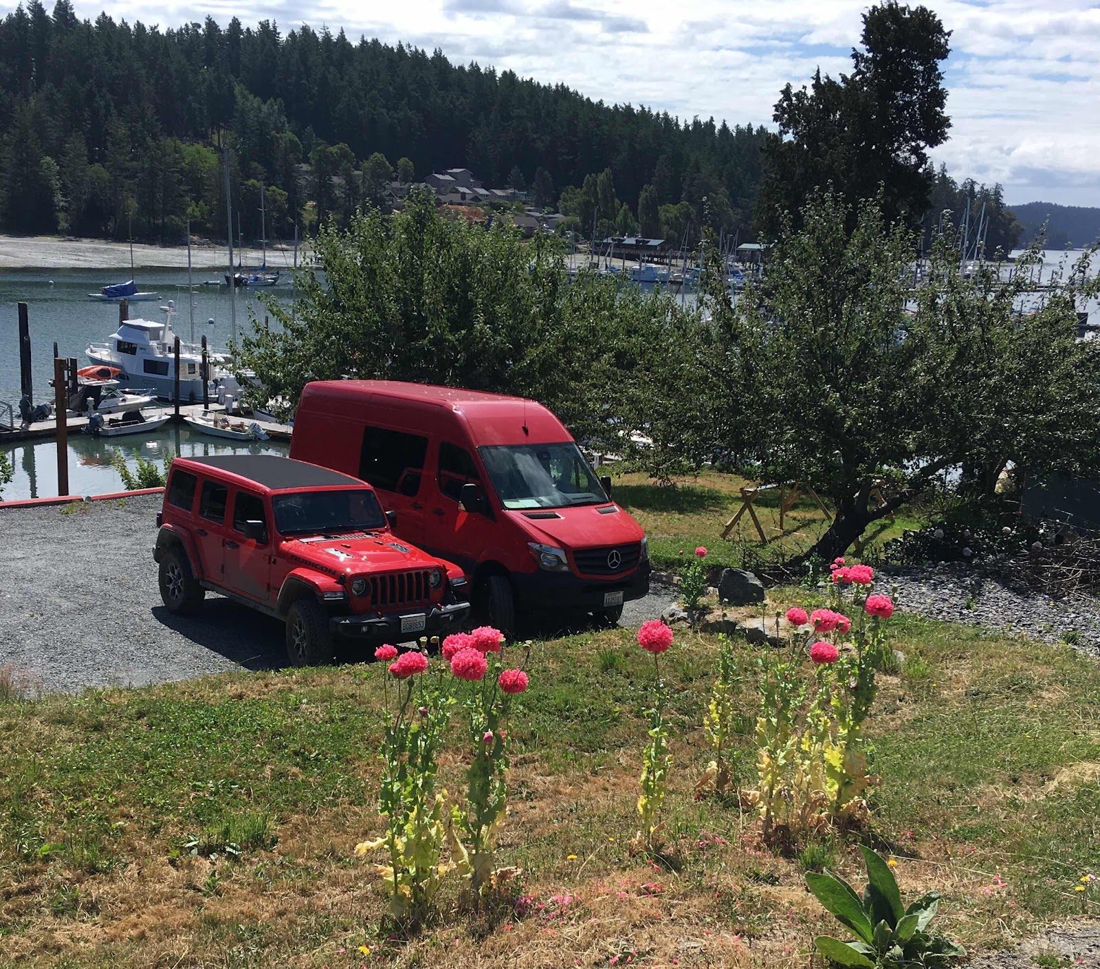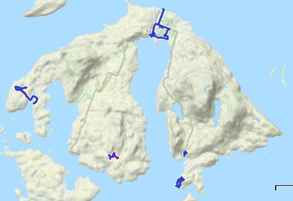 In addition to the theme of today’s hike (crossing back and forth between the SE Boundary Trail and the Mount Pickett Trail on the connector trails between them, and crossing the park boundary to visit and return from Doe Bay Resort), I associate the title of today’s hike (and blog) with the summer solstice, hence our crossing into summer, the earth “crossing” the point of maximum tilt (of the northern hemisphere) toward the sun, our days crossing from lengthening to shortening, the sun from its highest position in the sky.